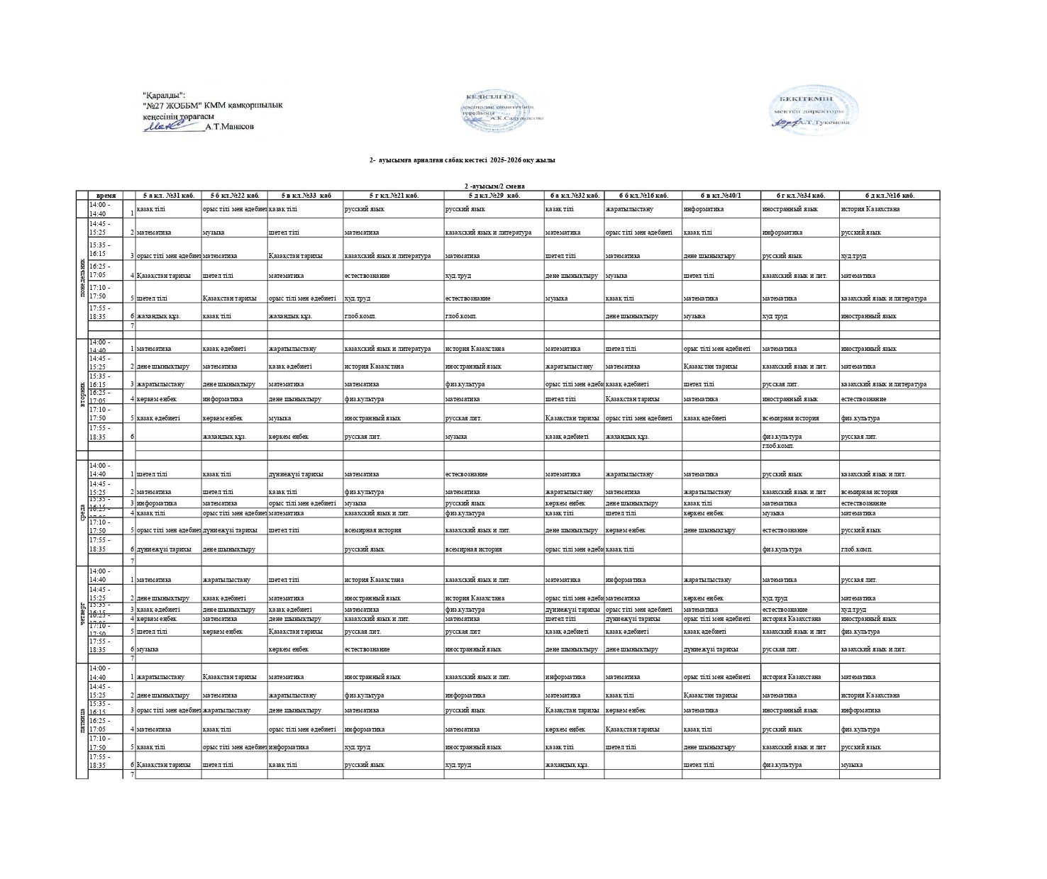 Сабақ кестесі. 2 ауысым. 2023-2024 оқу жылы. » "№ 27 жалпы орта білім беретін мектебі" КММ, Семей қаласы, Абай облысы.
