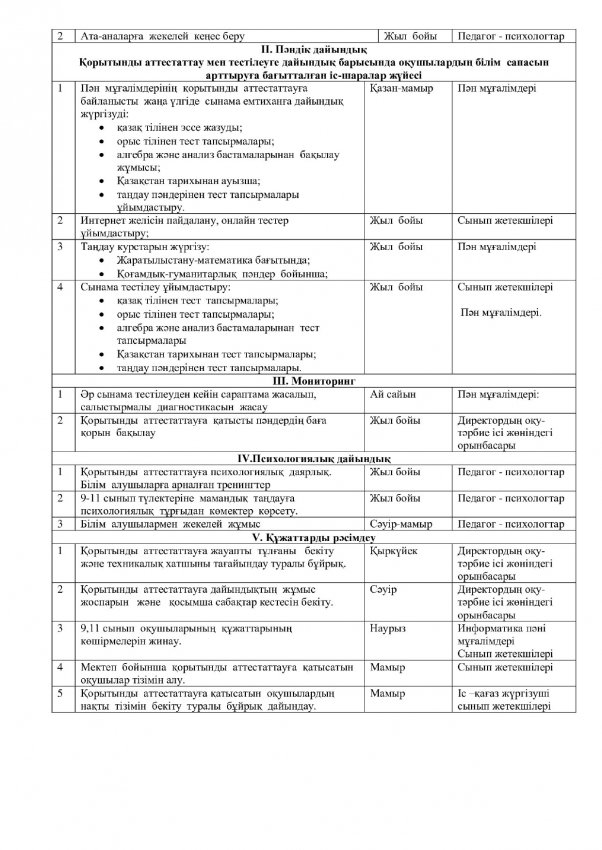 » » » Қорытынды аттаестаттауға дайындық жұмыс жоспары